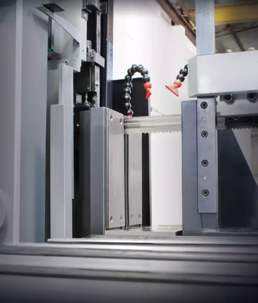• The interdependency between the cutting vice and the vertical support of the front blade guide head reduces setting time of the sawing machine, thus allowing their automatic positioning according to the section to cut.